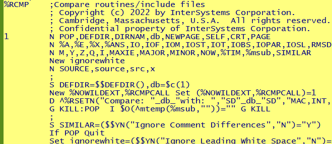 USER>ZLOAD %RCMP PRINTI've seen solutions with files, and one way to do it would be to write the routines to files, and compare those, but I'd like to avoid that if possible.