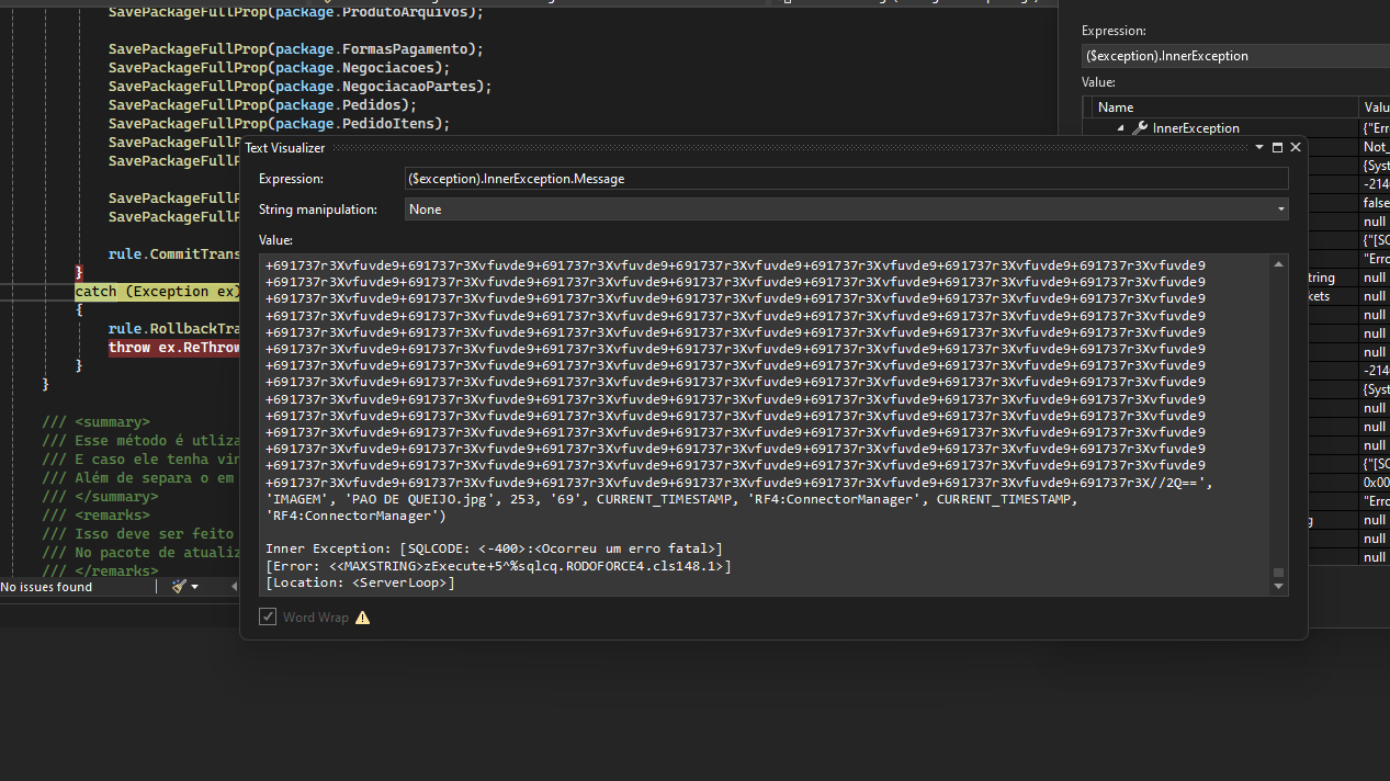 Inner Exception: [SQLCODE: <-400>:<Ocorreu um erro fatal>]