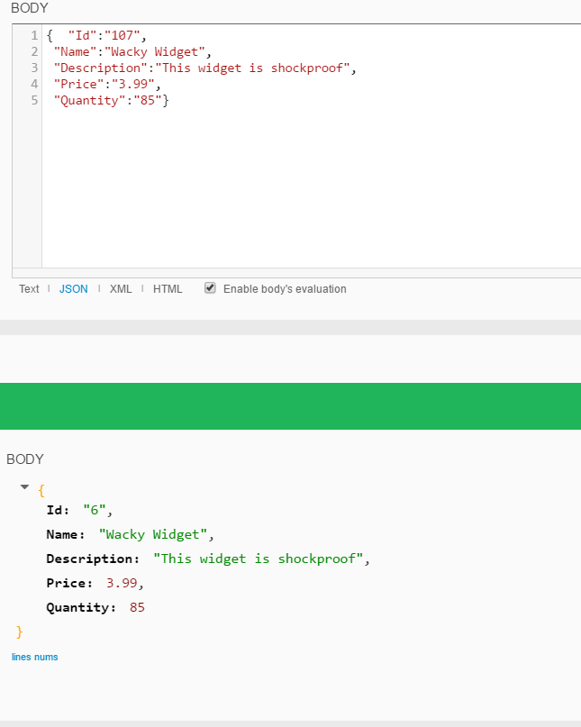 Now, we move to using our new fromJSON method to update or add objects. These 2 classmethods are basically identical, with the UpdateWidgetById using the supplied ID value to open a specific object instance, while the AddNewWidget just performs a %New() to get a new object instance to write to. Once an object instance has been loaded, the fromJSON is run. This takes the contents of the Request as the JSON input - Set updateJSON = %request.Content.Read(). Any Save errors are passed back to the client. As a final step, the current state of the object is returned using the toJSON(). This is very useful when we start implementing these calls in our application, as we can instantly rebind the current state of the object to the display, without having to make a secondary call to a GET.