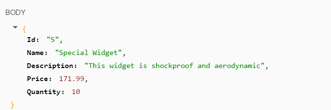 Next, we can implement the GetWidgetById. This is a very easy pattern to implement. We unpack the Id value passed in, use it to open the relevant object instance, and return the toJSON() output via a write. If the object fails to load, then we pass that error back out as a return value