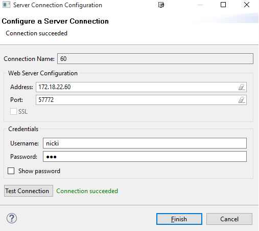 -Pressed Test Connection and confirmed I saw the message 'Connection succeeded'