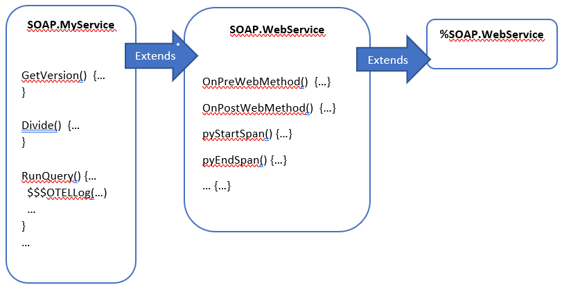 Subclass IRIS's %SOAP.WebService class with OpenTelemetry implementation logic and Python library functions in a new calss called SOAP.WebService. Include Macros that can be used in user code to further contribute to observability and tracing. Minimal changes to the existing SOAP implementation should be needed (replace use of %SOAP.WebService with SOAP.WebService as the Web Service superclass for implementing SOAP.