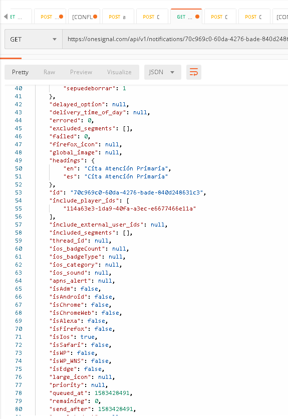 linea: {"app_id":"5cf57b56-c3b4-4a0d-8938-4ac4466f93af","headings":{"en":"Cita Atención Primaria","es":"Cita Atención Primaria"},"subtitle":{"en":"C.P. ISORA","es":"C.P. ISORA"},"contents":{"en":"Aqui el contenido del mensaje si aplicase","es":"Aqui el contenido del mensaje si aplicase"},"data":{"centro":"C.P. ISORA","fecha":"yyy/mm/dd","hora":"hh:mm","profesional":"nombre del profesional","nomUsuario":"nombre de usuario","codcita":"idCita","sepuedeborrar":"1"},"include_player_ids":["114a63e3-1da9-40fa-a3ec-e6677466e11a"]}