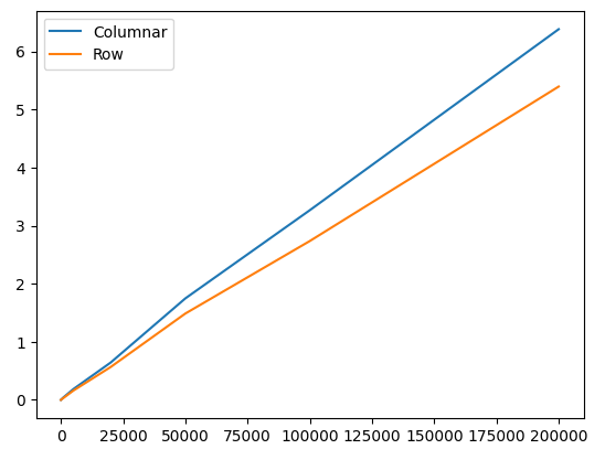 Test Columnar vs. Row Storage