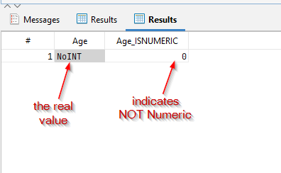 ISNUMERIC(CAST(Age AS VARCHAR(255))) AS Age_ISNUMERIC