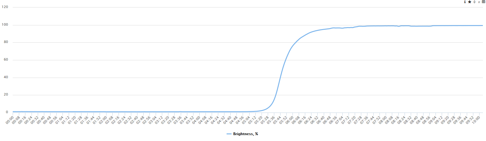 Brightness levels. Sunrise is clearly visible around 5:50: