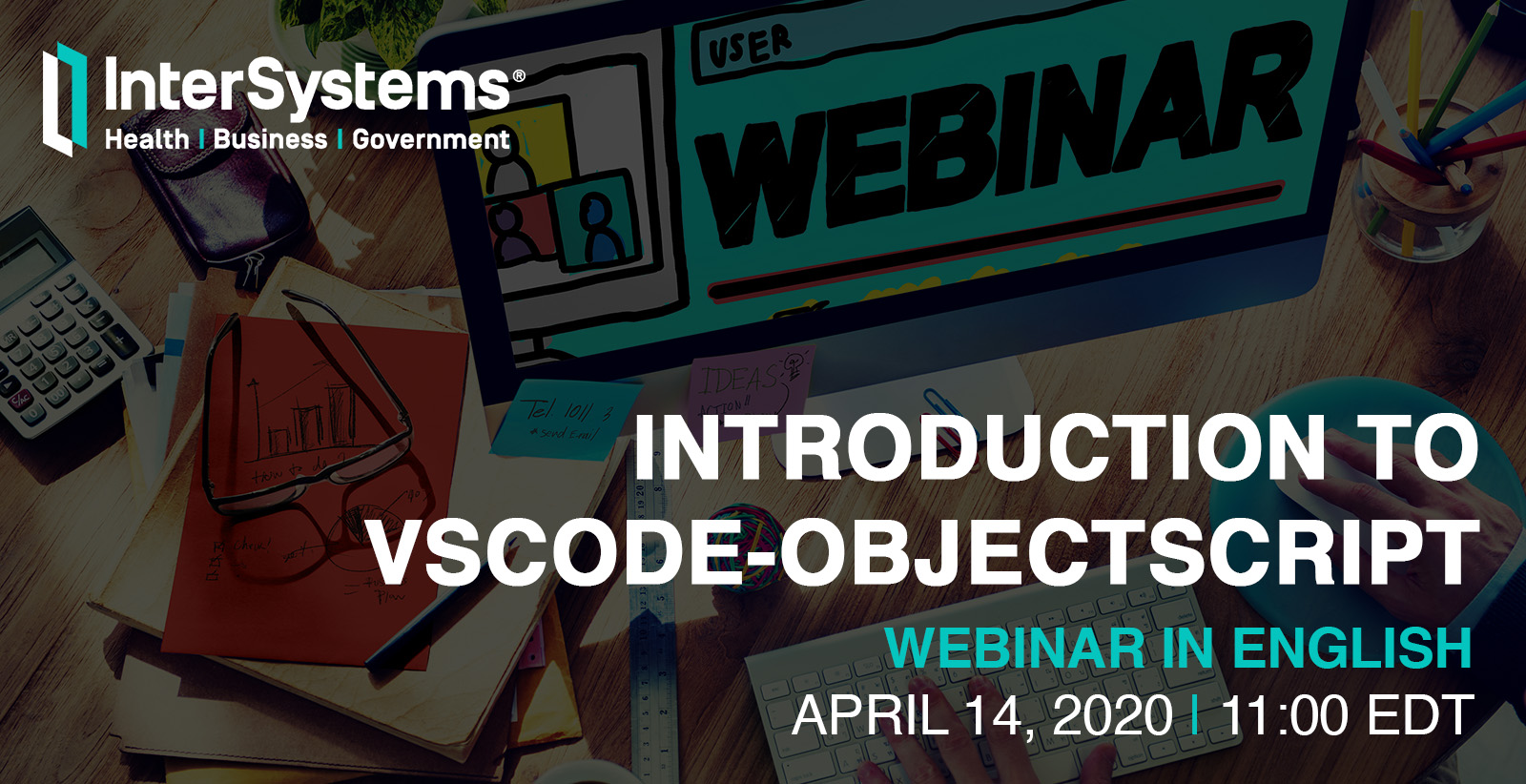 We are glad to invite every developer who uses ObjectSript and VSCode plugin to the upcoming "Introduction to VSCode-ObjectScript" webinar on April 14, 2020 at 11:00 EDT.