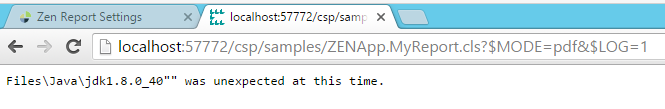 Outputting a Zen Report as PDF causes an error, for example ZENApp.MyReport.cls in the SAMPLES namespace: